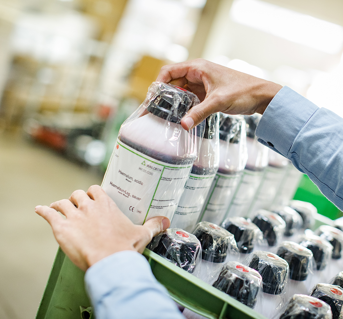 Jahrzehntelange Erfahrungen bilden die Basis für die Produktion unserer Farbstoffe, Farbstoffgemische und Farbstofflösungen für das mikroskopische und diagnostische Arbeiten. Sie haben damit die Gewähr für Präparate in stets gleichbleibender Qualität. Alle Rohstoffe beziehen wir von langjährigen und zuverlässigen Partnern. Sie werden einer intensiven Überprüfung unterzogen, zu CHROMA® Produkten weiterverarbeitet und gelangen erst dann auf den Markt. Zu den heutigen Kunden zählen unter anderem Krankenhäuser, medizinische Labore und naturwissenschaftliche Institute.